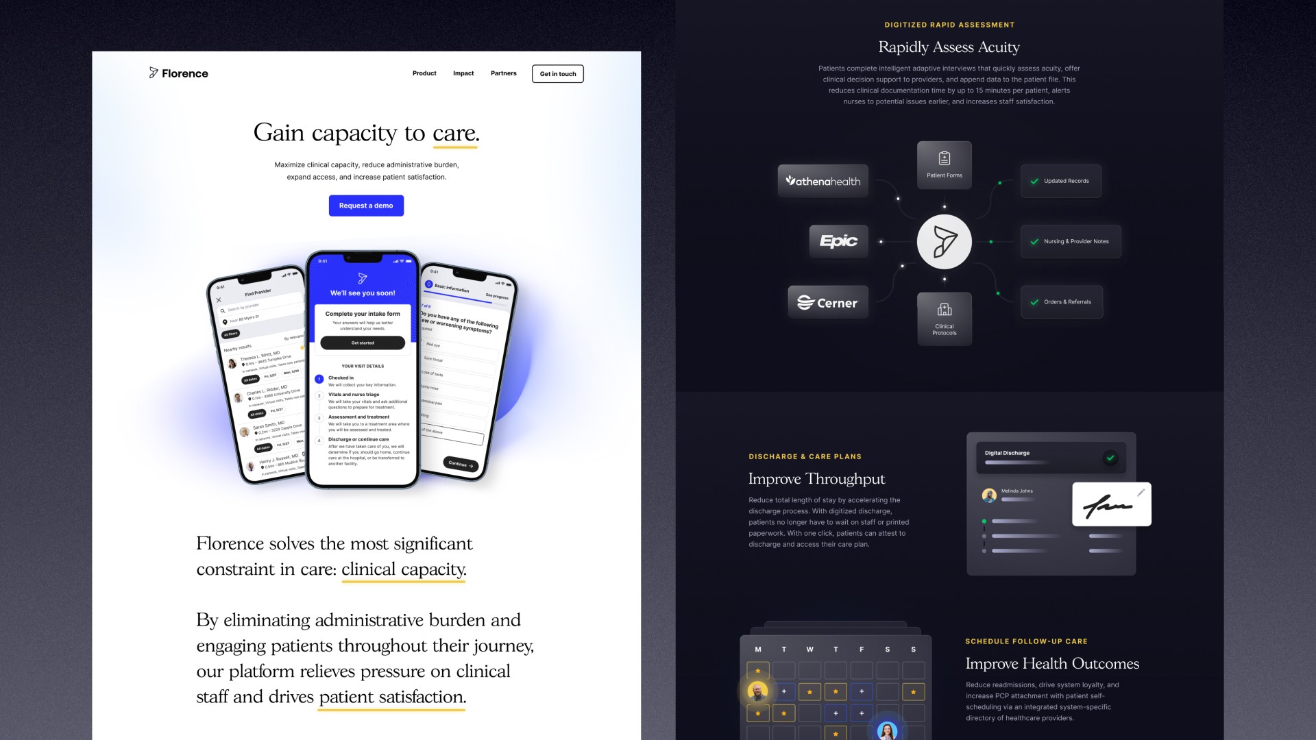 Fabric, formerly known as Florence, is a health tech company that powers healthcare to move faster, work smarter, and deliver better care through its care enablement system. Leveraging conversational AI and intelligent adaptive interviews, Fabric unifies virtual and in-person care across intake, triage, routing, and treatment while automating workflows for staff.